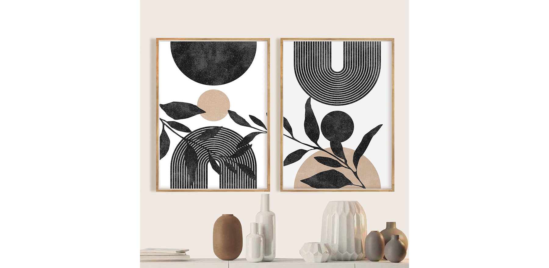 Neutral Abstract Archway Wall Art - Sun & Leaves Minimalist Print set