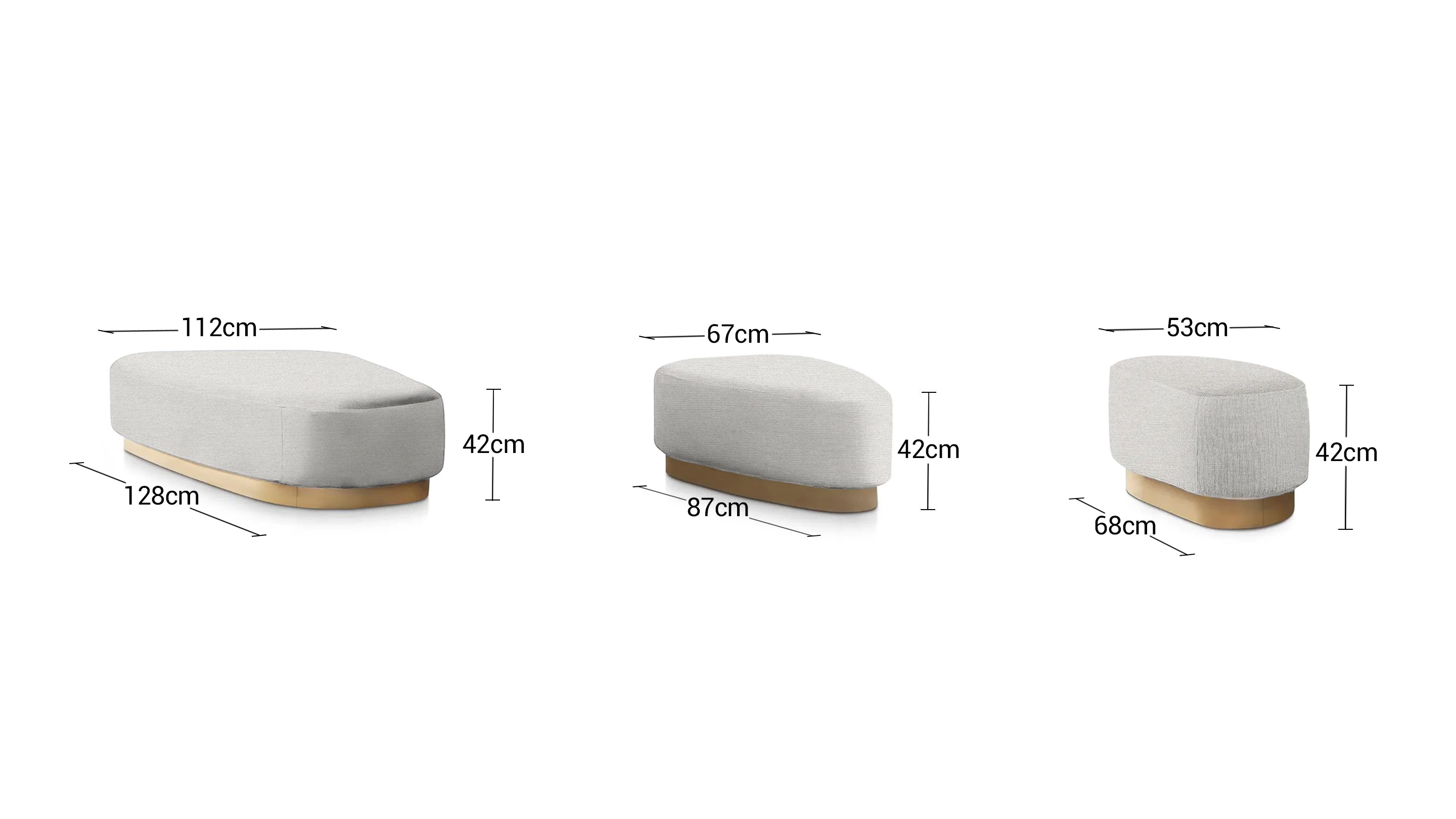- Set of 3 Poufs with 3 different dimensions.