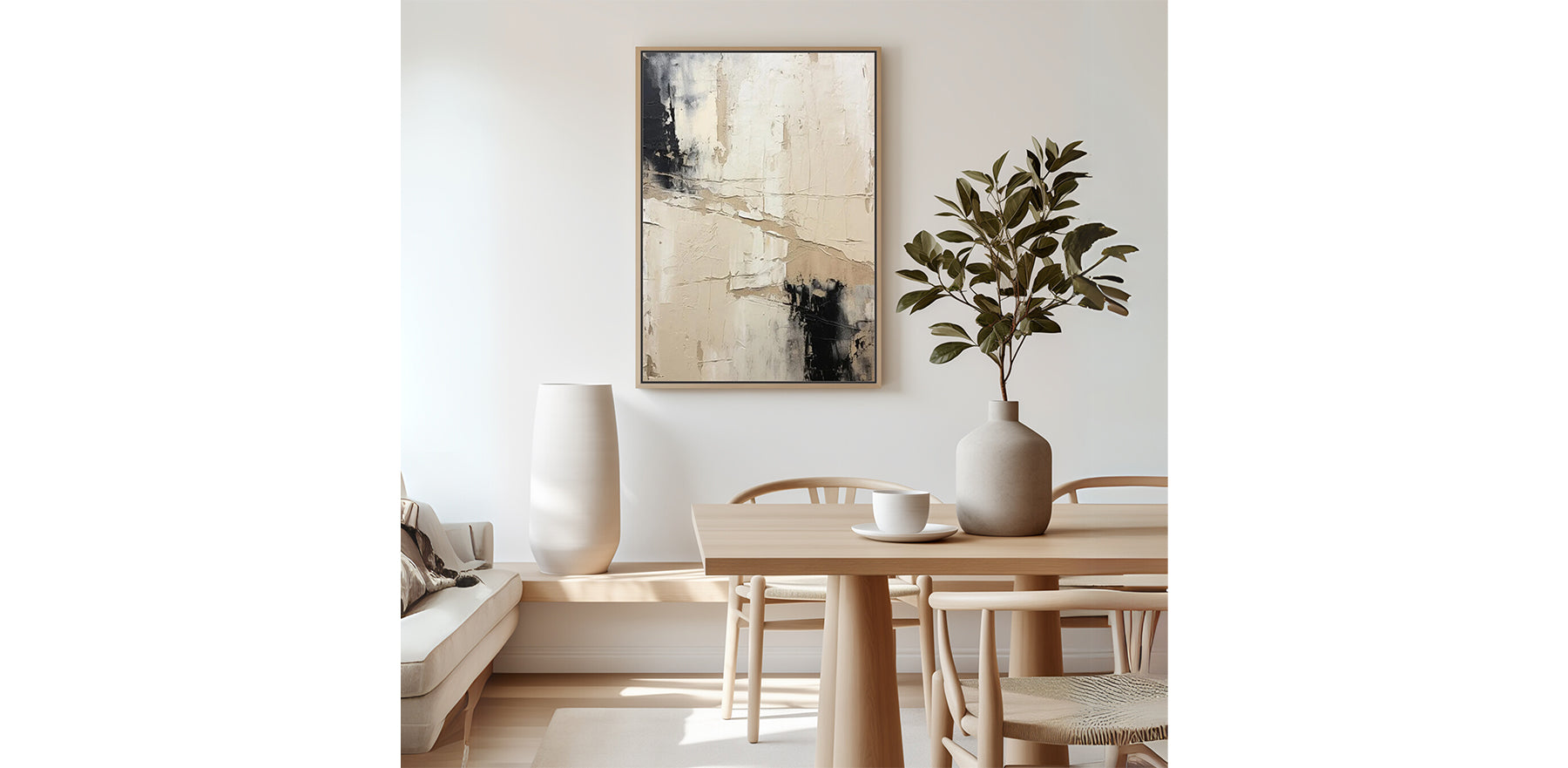 - Bring a touch of understated elegance to your space with this handcrafted abstract wall art. Featuring rich texture, neutral tones, and a dark wooden float frame, this piece blends modern minimalism with organic warmth.