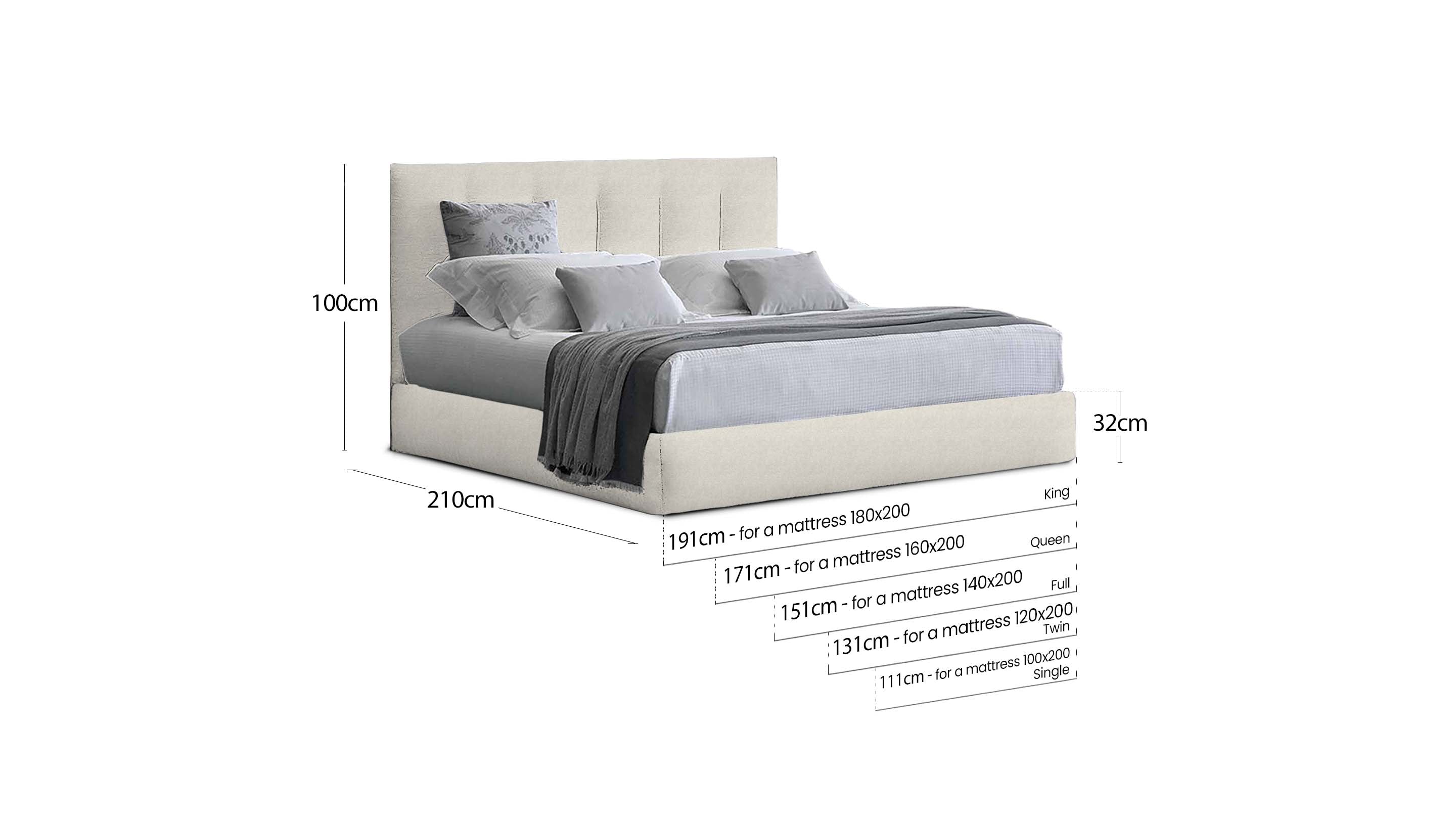 Overall Dimensions 191W*210D*100H / 171W*210D*100H / 151W*210D*100H