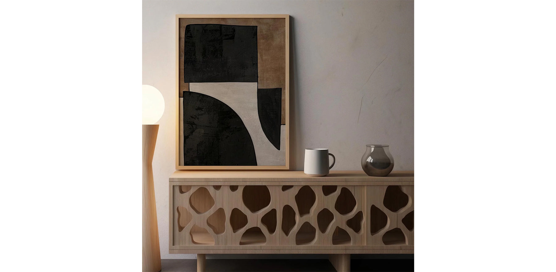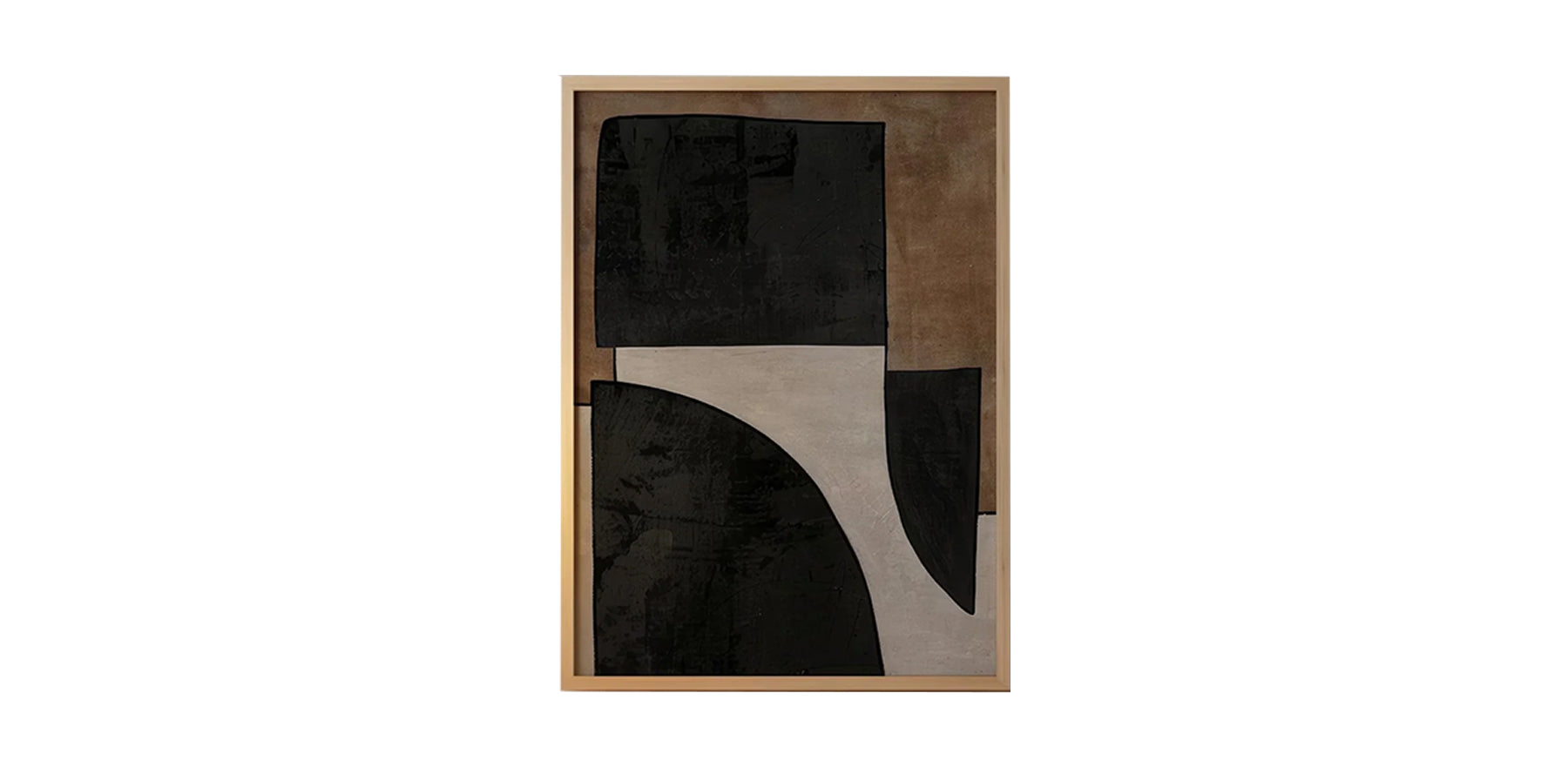 • Bring a touch of quiet elegance to your space with "Harmony of Shadows", a modern abstract artwork featuring bold geometric forms in earthy tones of black, beige, and warm brown.